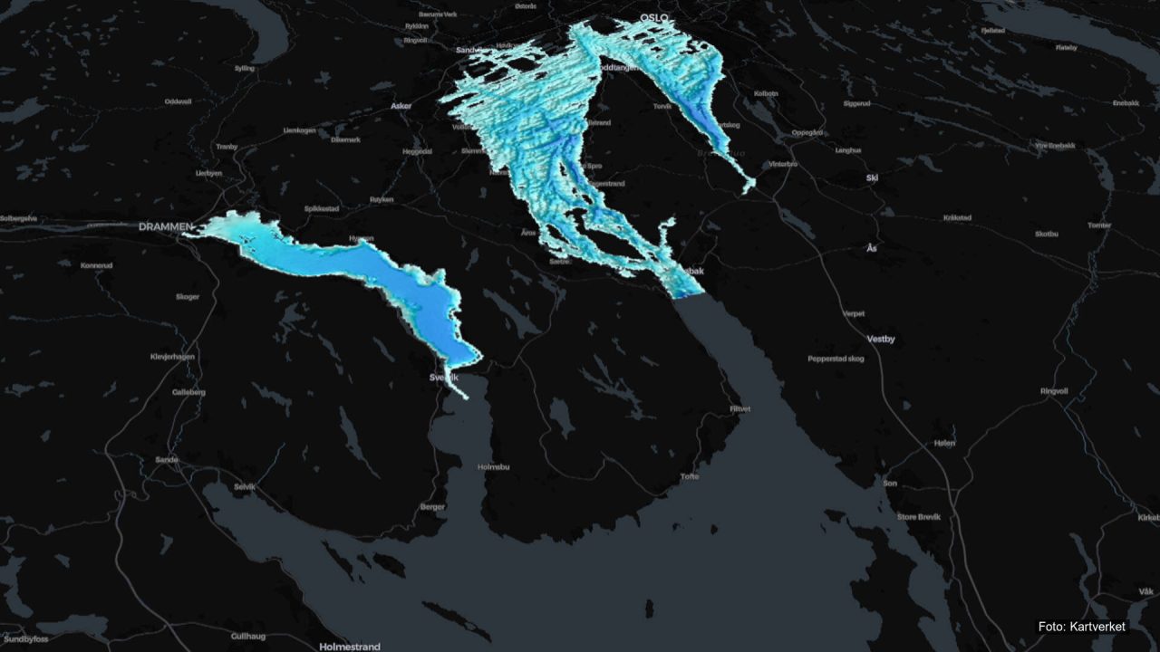 Under overflaten skjuler Oslofjorden et undervannslandskap av renner, terskler og grunner – som fjell og daler på land. Sjøområdet er grått i dette kartet. Her møtes ferskvann fra elver og regn med saltvann fra Skagerrak, og lagdelingen gjør fjorden følsom for både vær og hav. Små endringer i strøm, temperatur og saltinnhold kan få stor betydning for livet under vann.