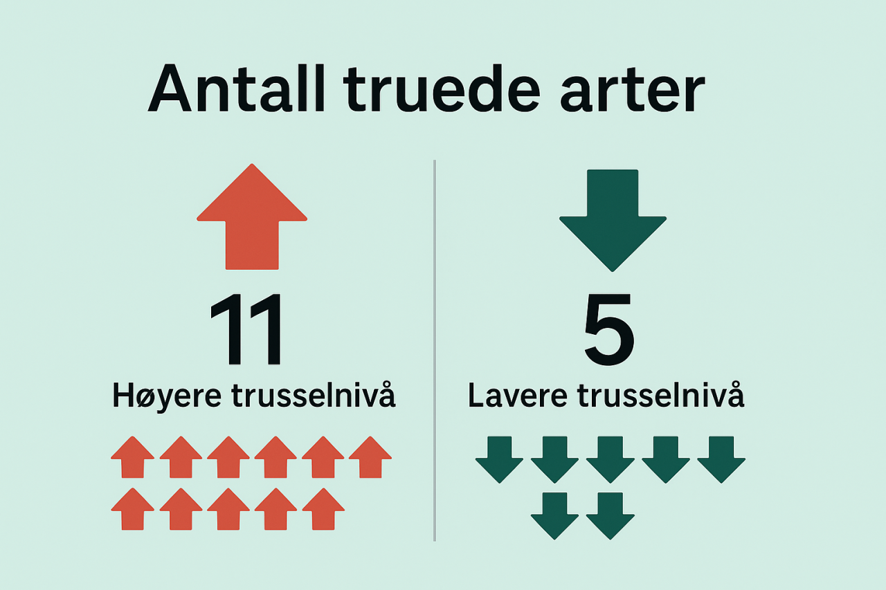 - 21 arter er sterkt truet